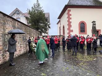 Die Gedenkfeier am Volktrauertag fand in Flieden nach dem Gottesdienst am Ehrenmal auf dem Kirchplatz statt. „Die Döngesmühler“ begleiteten die Veranstaltung mit einer musikalisch würdenvollen Darbietung.