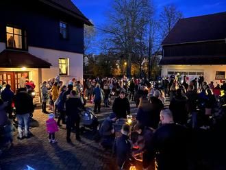 In der dunklen St. Martin-Nacht am 10.11.2022 haben sich alle kleinen Strolche, mit ihren Familien und Erzieher/innen, in Lenzis Garten getroffen. Nach dem Lauschen einer Klanggeschichte begleitete uns St. Martin bis zur Bornmühle und weiter zur Kindertagesstätte. Lautstark ertönten die Martinslieder und der Gedanke dieser Feierlichkeit trug sich durch den gesamten Abend. Auch wir wollen Teilen und nicht den Blick für unseren Nächsten verlieren. Für „Jayden und seine Familie“ konnten 430 € gesammelt und somit auch einen toller Beitrag geleistet werden. Unter musikalischer Begleitung konnte diese besondere Stimmung den Laternenumzug zu einem unvergesslichen Moment machen.