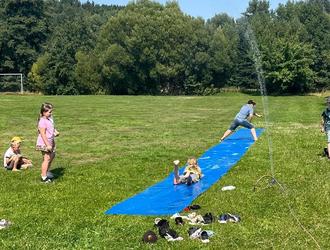 Der letzte Tag der Ferien-Aktiv-Woche startete mit einer Schnitzeljagd auf dem Gelände rund um das DGH Döngesmühle. Dabei mussten die Kinder Puzzleteile eines großen Puzzles suchen und diese ergaben dann die Schatzkarte. Bürgermeister Gärtner besuchte die Kinder und verteilte eine Runde Eis. Auch an diesem Tag kam die Wasserschlacht nicht zu kurz. Die ereignisreiche Ferienwoche ließen wir mit gegrillten Würstchen und toben auf dem Spielplatz ausklingen.