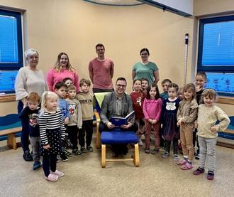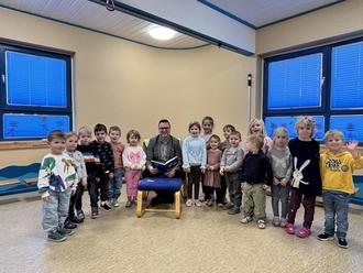 Auch die Kinder der Kindertagesstätte in Magdlos kamen in den Genuss des Vorlesens. Fliedens Bürgermeister Christopher Gärtner las den beiden Gruppen der Kita in gemütlicher Atmosphäre die Adventsgeschichte „Der gläserne Vogel“ von Eva Marder vor. „Lesen und Vorlesen sind für Kinder von zentraler Bedeutung“, ist Christopher Gärtner überzeugt. „Vorgelesen zu bekommen regt die Fantasie und Kreativität an, es fördert das Sprachgefühl, schafft Nähe und Geborgenheit.“ Der bundesweite Vorlesetag macht genau darauf aufmerksam und setzt ein starkes Zeichen für die Leseförderung. „Da bin ich natürlich gerne dabei und leiste meinen Beitrag zu diesem wichtigen Thema“, führt er weiter aus. Die Kinder freuten sich sehr über den Besuch des Bürgermeisters und lauschten gespannt der Kurzgeschichte, die eine wunderbare Abwechslung zum Kita-Alltag bot und auf die Vorweihnachtszeit einstimmte.