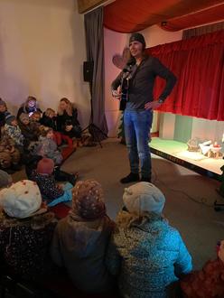In der Scheune hatte das Marionettentheater Kistenhausen seine Bühne aufgebaut und die Kinder konnten in einer besonderen Location eine Aufführung von der Hexe Zwiebel und dem Räuber Franz anschauen.