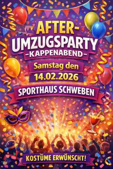 Einladung zur After-Umzugsparty, ab 17:00 Uhr im Sporthaus Schweben