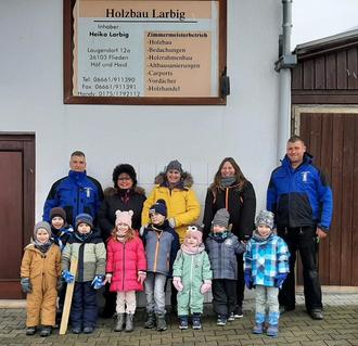 Am Donnerstag den 30.11. 2023 besuchten die Sonnenkinder vom Kindergartens Rückers passend zu ihrem Thema: "Holz- Werkstoffe" die Firma Holzbau Larbig in Flieden- Laugendorf.