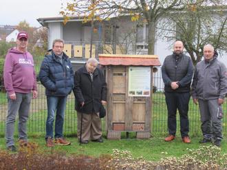 Das Hausmeisterteam von St. Katharina machte sich daraufhin an die Arbeit und gestaltete die Nisthilfe von Grund auf neu. Der NABU-Flieden entwarf Text und Bilder der Infotafel, die von Herrn Verhaag gesponsert wurde.