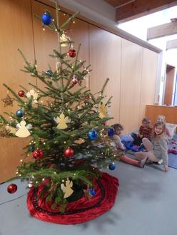 Jetzt schmückt der Baum unsere Kita und wurde von den Kindern liebevoll geschmückt.