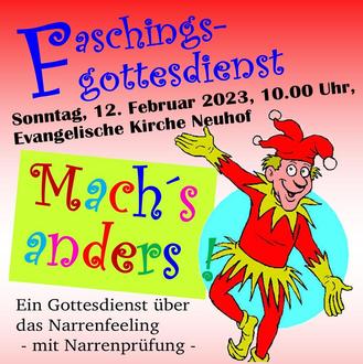 „Mach´s anders - Ein Gottesdienst über das Narrenfeeling (mit Narrenprüfung)“.