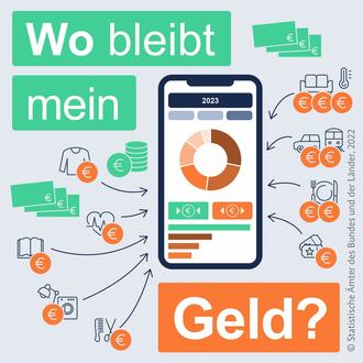 Unter dem Motto „Wo bleibt mein Geld?“ führen die Statistischen Ämter des Bundes und der Länder von Januar bis Dezember 2023 die nächste Einkommens- und Verbrauchsstichprobe (EVS) durch. Dafür werden in Hessen rund 6 000 Haushalte gesucht, die sich an der größten freiwilligen Befragung der amtlichen Statistik beteiligen. Als Dankeschön erhalten sie eine Geldprämie von bis zu 175 Euro. Die EVS findet alle fünf Jahre statt.