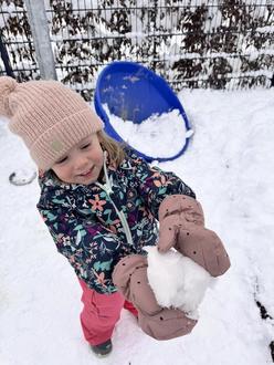 Draußen auf dem Außengelände war richtig was los: Es wurden kleine Schneekugeln gerollt, mit Schaufeln und Händen geformt, Schneeberge erklommen und Rutsch-Spuren entdeckt. Manche Kinder haben versucht, Schneeflocken mit der Zunge zu fangen, andere haben einfach nur ganz still beobachtet, wie alles weiß und glitzernd wurde.