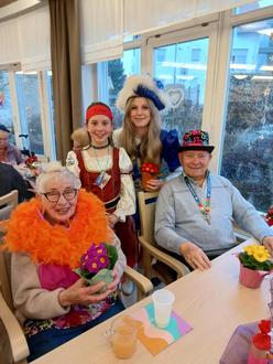 Den Höhepunkt des närrischen Nachmittags bildete der Einmarsch des FCV aus Flieden: Prinzessin Bianca und Prinz Hinnerk brachten mit den „Little Bellas“, den „Flotten Fechern“ und einem Teil ihres Hofstaat echtes Prinzenflair ins Haus. Nach zwei dargebrachten Showtänzen überreichten diese allen Bewohnern einen blühenden Frühlingsgruß, was viele Herzen höher schlagen lies. Für die musikalische Unterhaltung sorgte auch in diesem Jahr wieder Harald, der den Nachmittag mit Schunkelliedern und bekannten Karnevalshits umrahmte. Alle, die an der Gestaltung des Nachmittags beteiligt waren, sagen wir herzlich Dankeschön. Für die Bewohner und Gäste waren es unvergessliche Stunden.