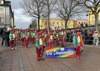 Pünktlich um 13:33 Uhr eröffneten „Die Döngesmühler“ unter der Stabführung von Tamara Reuß den ROMO-Zug in Fulda. Der Wettergott spielte mit und so marschierten wir bei Sonnenschein durch ein Meer von 50.000 Zuschauerinnen und Zuschauer vom Bahnhofsvorplatz bis zur Königstraße. Der große Rosenmontagszug in Fulda war auch in diesem Jahr wieder der Höhepunkt unserer Fastnachtskampagne.