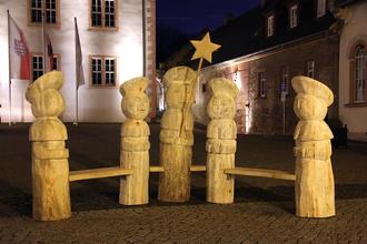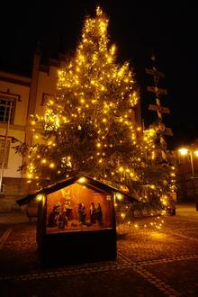 Schön anzusehen - der Weihnachtsbaum mit Krippe vor dem Rathaus in Geisa