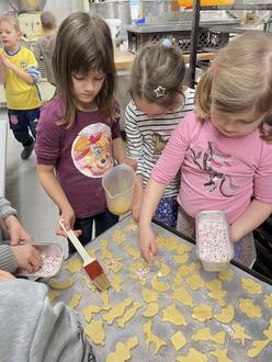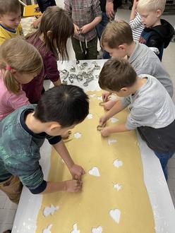 Begeistert rollten die Kinder den Teig, stachen die Formen aus und verzierten die Kekse mit Hingabe