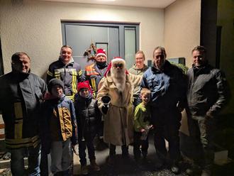 Festlich, ehrenvoll und weihnachtlich wurden der Nikolaus und seine Begleiter, die Feuerwehrkameraden, bei Familie Schäfer empfangen.