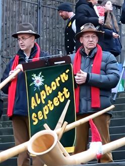 Geisa/Erfurt. Die Geisaer Alphornbläser traten am 20. Dezember auf den Erfurter Domstufen auf und sorgten dort für einen stimmungsvollen, musikalischen Höhepunkt.