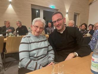 Agnes Keidel (ehemalige Haushälterin von Pfarrer Brähler) mit Pastor Dr. Jürgen Kämpf