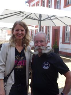 Geisas Bürgermeisterin Manuela Henkel begrüßt den Präsidenten des Verbandes deutscher Bartclubs, Jürgen Burkhardt