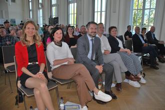 Zur Auftaktveranstaltung kamen auch die Thüringische Wirtschaftsministerin Colette Boos-John (2.v.l.) und Landrat Dr. Michael Brodführer (3.v.l.)