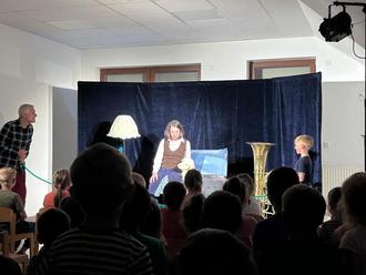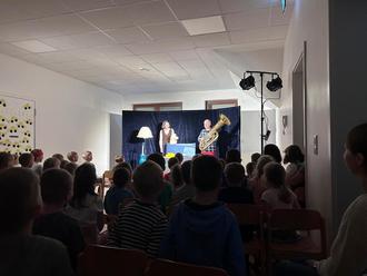Mit viel Humor, kindgerechtem Spiel und eingängiger Musik nahmen die beiden Darsteller die Kinder mit in Huppers Wohnzimmer und vor allem in die geheimnisvolle Welt unter dem Sofa. Dort entdeckten sie nicht nur allerlei Instrumente und sonderbare Gegenstände, sondern auch das neugierige Schaf Lotta, das sich schnell zum heimlichen Star der Vorstellung entwickelte. Lotta war voller Fragen und staunte nicht schlecht, als die beiden Musiker erklärten, wie eine Tuba klingt, wie sie früher aussah und warum sie heute so anders geformt ist.