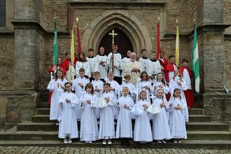 Geisa. Für 10 Mädchen und 5 Jungen aus Geisa war es am 4. Mai endlich so weit. Nach acht Monaten intensiver Vorbereitung feierten sie ihre Erste Heilige Kommunion in der Stadtpfarrkirche „St. Phillipus und Jakobus“ in Geisa.