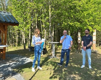 Geisa. Rund um die Rhöner Mundart geht es beim neu gestalteten Panoramablick, der überhalb von Geismar liegt. Der Platz bietet neben Infotafeln rund um den Dialekt, einer Panoramatafel und zwei Relaxliegen zudem einen fantastischen Blick auf das Dorf und in die Rhön. Zur Einweihung konnte Geisas Bürgermeisterin Manuela Henkel Dr. Frank Riedel vom Biosphärenreservat, die Erste Beigeordnete der Stadt Geisa, Simone Kleinstück, Bauhofleiter Rainer Wald, beteiligte Firmen und Vereine sowie Geismarer Bürger begrüßen. „Das ist hier ein ganz besonderes Plätzchen“, stellte Manuela Henkel fest. Ein Ort, an dem man Gemeinschaft, Ruhe, Heimat und Kultur erleben kann. Die bereits früher aufgestellte überdachten Sitzgruppe lädt zum Verweilen in geselligen Runden ein und die beiden neuen Relaxliegen bieten einen tollen Platz zum Entspannen. Bei einem wunderbaren Blick in die Rhön kommt echte Heimatverbundenheit auf. Mehrere neu angebrachte Infotafeln berichten über die Geschichte des Rhöner Platts, einem Kulturgut auf das man im Geisaer Land noch sehr viel Wert legt. Es gibt Geschichten über die „buckelige“ Verwandtschaft, über die Hausnamen, das Patronatsfest „Michaelstag“ und ebenso im Dialekt Hinweise zum richtigen Benehmen vor Ort. „Das Projekt soll die regionale Identität stärken, die Rhöner Mundart lebendig halten und zugleich einen attraktiven Treffpunkt für Einheimische und Gäste sein“, betonte Henkel. Die ehemalige Schulleiterin Brigitte Heller gab dann auch ein Gedicht in Rhöner Mundart zum Besten und berichtete aus den guten alten Zeiten. Sie hatte mehrere Jahre lang eine Platt-AG an der Grundschule in Geismar geleitet und damit den Kindern aus der Region den Dialekt weitervermittelt. „Ab den 50iger Jahren durfte in den Schulen nicht mehr Platt gesprochen werden, was dazu führte, dass die Mundart im Alltag immer weniger gebraucht wird“, erläuterte Manuela Henkel. Die junge Generation verstehe zwar noch das meiste, das alltägliche Sprechen sei aber bei den unter 60jährigen fast ganz verloren gegangen. Sie führte ebenso in die Geschichte und Besonderheiten des regionalen Dialekts ein. Das „Rhöner Platt“ Thüringens und Hessens liegt im Übergangsbereich zweier deutlich voneinander abgrenzbarer Sprachgebiete: dem ostfränkischen und dem osthessischen Dialektgebiet. Die Grenze verläuft durch die gesamte Rhön von Süd-West nach Nord–Ost. „Die gesprochenen Dialekte verdeutlichen die Besiedlungsgeschichte der Rhön und ihrer angrenzenden Territorien, welche noch in die Zeit Karls des Großen zurückgehen dürfte“, berichtete Manuela Henkel. Charakteristisch für die gesamte Rhön und das Henneberger Land sei, dass bei Fragewörtern der Anlaut W zu einem B wird. „Aus wie wird „bäi“, aus wieviel wird „befill““, wusste die Bürgermeisterin zu erzählen. Das einzelne Ausdrücke der Rhöner Mundart bis auf die Germanen zurückgehen verdeutliche das Wort „gestern“. So zählten die Germanen nicht die Tage, sondern die Nächte, welche vergangen waren. „Wie unsere germanischen Vorfahren bezeichnet der Rhöner die Tage vor dem heute noch immer als „nächde““, verwies Henkel. Ebenso ging sie auf regionale Besonderheiten ein. Ihr besonderer Dank ging an alle Helfer, die Mitarbeiter von Bauamt und Bauhof und vor allen Dingen an das Biosphärenreservat Rhön, das den Ausbau des Panoramablicks mit 4.200 EURO aus dem Regionalbudget des Thüringer Umweltministeriums förderte. Dr. Frank Riedel nahm den Dank entgegen und erzählte, wie ihn selbst das „Platt“ in seiner Kindheit geprägt habe – durch die Großeltern sei ihm der Dialekt vertraut geblieben. Als einer der Initiatoren bedankte sich Ortsteilratsmitglied Uwe Sauermilch bei allen Helfern, Vereinen und Unternehmen, die das Projekt mit viel Engagement unterstützt haben – besonders lobte er die vereinsübergreifende Zusammenarbeit.