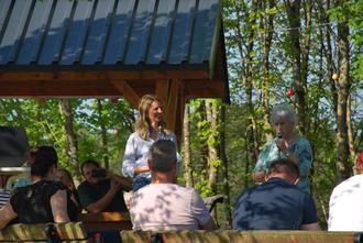 Zum Abschluss begeisterte Brigitte Heller noch einmal mit dem originellen Vortrag „Besser geploatzt bäi verdorrt “, bevor die Gäste bei Bratwurst, Getränken und herrlicher Aussicht auf die Rhöner Landschaft den neuen Lieblingsplatz Geismars genießen konnten.