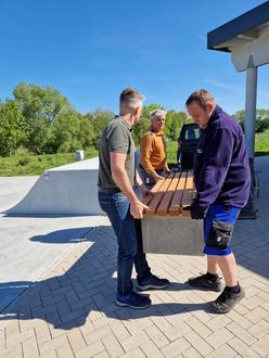 Die Bänke wurden zuvor von Lothar Zimmermann und Ortsteilratsmitglied Steffen Siebert gefertigt. Den Transport zur Anlage übernahmen die Ortsteilratsvertreter Thomas Wetter, Patrick Reckenbeil und Steffen Siebert. Martin Bernhard, der sich seit Langem mit großem ehrenamtlichem Einsatz für die Sport- und Freizeitanlage engagiert, zeigte sich über die neuen Sitzgelegenheiten sehr erfreut. Zwei der Bänke wurden am Pumptrack und der Skateranlage aufgestellt, wo nun auch die Eltern einen Platz zum Verweilen finden. Drei weitere fanden ihren Platz am Spielfeldrand – sehr zur Freude der Besucher und Sportler.