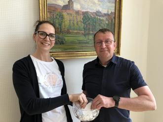 (v.l.n.r.) Anja Nimmich (Verwaltungsmitarbeiterin Stadt Geisa) und Steffen Bott (Hauptamtsleiter Stadt Geisa) bei der Ziehung der Gewinner der Namensvorschläge für das neue Dorfgemeinschaftshaus in Ketten