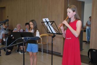 Eine besondere musikalische Überraschung und Programmhöhepunkt bot die Akkordeonschülerin Sophia Hergert. Gemeinsam mit ihrer Oma Heike Hergert musizierten sie mit ihren Instrumenten im Duo für die Zuhörerinnen und Zuhörer.