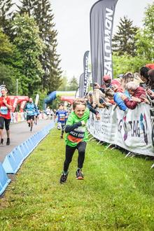 Toni Simon konnte sich hierbei in seiner Altersklasse U8 beim Massenstart des Knirpsenlaufes über eine Streckenlänge von 1,1 Kilometern gegen 62 Jungen durchsetzen und kam mit einer Laufzeit von 4 Minuten und 33 Sekunden als Erster ins Ziel und sicherte sich somit den Podiumsplatz. Doch nicht nur die Erstplatzierten durften im Anschluss zur Siegerehrung auf die Bühne, alle Kinder bekamen im Ziel eine Teilnehmer-Medaille, nachdem sie unter den Augen der begeisterten Zuschauer im „schönsten Ziel der Welt, in Schmiedefeld“, unter dem Torbogen, durch den alle Aktiven ins Ziel einlaufen, gefeiert wurden.