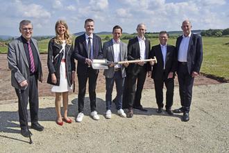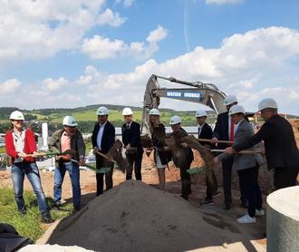Bauherren, Bauleute und Ehrengäste griffen im Gewerbegebiet in Geisa zum Spatenstich