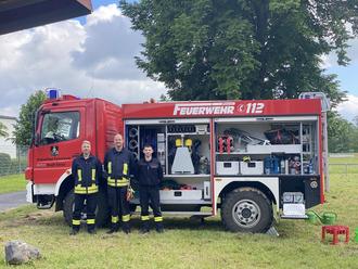 Auch die örtliche Feuerwehr war mit einem Löschwagen vor Ort und bot den Kindern Wissenswertes rund um die Arbeit der Feuerwehr.