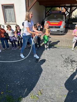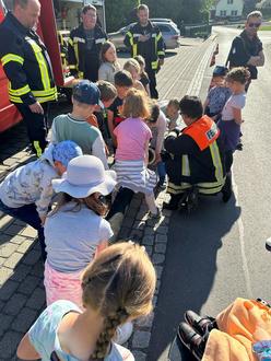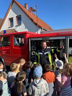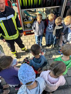 Die Kinder erhielten zudem spannende Einblicke in die Ausrüstung der Feuerwehr und lernten, wie vielseitig die Aufgaben der Brandschützer sind. Besonders eindrucksvoll: Die Gerätekunde und die Vorstellung des Feuerwehrhauses – kindgerecht erklärt und mit vielen Gelegenheiten zum Mitmachen.