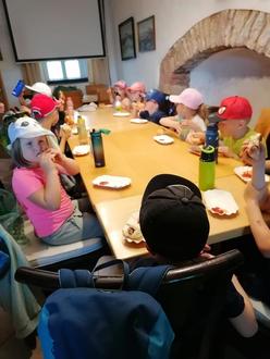 Frau Graser, die Tourismusbeauftrage der Stadt Geisa, empfing die Kinder und Erzieherinnen herzlich in der Galerie und erklärte den Kindern die laufende künstlerische Ausstellung und das Museum. Alle Kinder waren hell auf begeistert von den gestalteten Bildern der Schüler der Regelschule Geisa.