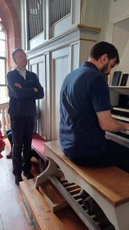 Interessiert zeigte sich Bischof Dr. Gerber beim Orgelspiel