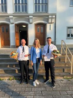 Jens Quentmeier (links), Bürgermeisterin Manuela Henkel (Mitte) und Steven Rust (rechts)