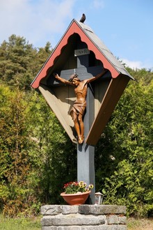 Das Friedhofskreuz ließ sich aus Stein nicht beschaffen. Ein Eichenkreuz wurde errichtet, vorläufig noch ohne Christuskörper. Der Christuskorpus wurde später nachgeliefert. Er ist aus Eichenholz geschnitzt und von der Firma Josef Lang selig Erben in Oberammergau, gefertigt. Am Sonntag, dem 20.9.1942 fand die feierliche Einweihung statt.