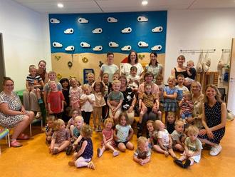 Die Kinder und Erzieherinnen des Kindergartens „St. Josef Borsch“ sowie Bürgermeisterin Manuela Henkel verabschieden zwei langjährige Mitarbeiterinnen Christel Kind und Jutta Volkmar