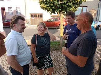 Bauhofleiter Rainer Wald und Ortsteilbürgermeisterin Angela Zimmermann im Gespräch mit Anliegern der Stadtmauer