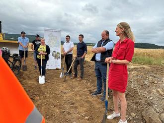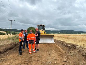 Geisa. „Was lange währt, wird endlich gut!“ Mit diesen Worten begrüßte Geisas Bürgermeisterin Manuela Henkel zum Start der Bauarbeiten für das Modellvorhaben „Radverkehr im Geisaer Land“. Gemeinsam mit der für die ersten beiden Streckenabschnitte zuständigen Baufirma TSI und dem zuständigen Planungsbüro TTB Werra, Stadträten, Ortsteilbürgermeistern und Bauamtsmitarbeitern konnte die Bürgermeisterin den Spatenstich für das Modell-Vorhaben setzen. Insgesamt soll ein Radwegenetz mit etwa 30 Kilometern durch das Geisaer Land entstehen, was für mehr Mobilität, Sicherheit und Lebensqualität in der Region sorgen soll. Der erste Streckenabschnitt, mit dem nun begonnen wurde, verbindet mit 2,8 Kilometern die Ortsteile Borsch und Bremen. Fast parallel dazu folgt der etwa vier Kilometer lange Ausbau von Bremen über Geblar und Otzbach. Ebenso soll noch in diesem Jahr mit der Strecke Wiesenfeld-Geismar begonnen werden. „Das ist das Projekt mit dem aktuell geplanten größten Eigenanteil, dass die Stadt gebaut hat“, erläuterte Manuela Henkel. Die Stadt wird hier bei aktuell geplanten Kosten von 4,7 Millionen EURO etwa 1,6 Million EURO Eigenmittel aufwenden. Bereits 2019 hatte die Kommune einen Fördermittelbescheid durch das Bundesministerium für Wirtschaft und Klimaschutz für Gesamtkosten von 2,7 Million EURO erhalten. „Wir mussten allerdings erst noch die Grundstücke erwerben und das 2020/2021 zur Corona-Zeit, was zu erheblichen Verzögerungen führte“, berichtete die Bürgermeisterin. In der Zwischenzeit waren die Baukosten auf 5,3 Millionen EURO gestiegen und konnten durch verschiedene Anpassungen und Streichungen durch die Stadt auf 4,7 Millionen EURO reduziert werden. Trotz allem musste ein neuer Förderantrag mit aufwendigen Neuberechnungen von der Stadtverwaltung gestellt werden. „Dann kam die Bundeshaushaltssperre und es war unsicher, ob wir überhaupt noch Mittel zugeteilt bekommen“, so Henkel. Nach zahlreichen Gesprächen und einem intensiven Austausch mit den Ortsteilräten, entschloss sich der Stadtrat an dem Projekt festzuhalten. Mit viel Glück gab es dann Anfang des Jahres den lang ersehnten Fördermittelbescheid, so dass nun zeitnah mit den Baumaßnahmen von Seiten der Stadt Geisa begonnen werden konnte. Bis Ende 2027 müssen die verschiedenen Abschnitte, die alle Ortsteile mit der Kernstadt verbinden, gebaut sein. Insgesamt sollen auf einer Länge von ca. 30 Kilometern neue Radwege, auch acht Radabstellanlagen mit jeweils drei Bügeln sowie vier Elektroladesäulen an hochfrequentierten Standorten entstehen. Ebenso wird es Anschlüsse zu den Gemeinden Buttlar, Schleid und Gerstengrund geben. „Der Ausbau des Radwegenetzes ist dabei vor allen Dingen ein Projekt für die Bürger, ein Schritt in Richtung nachhaltiger und umweltfreundlicher Mobilität“, so die Bürgermeisterin. Ziel ist es, sichere und gut ausgebaute Radwege zu schaffen, die es den Menschen vor Ort ermöglichen, bequem und sicher ihre Wege zurückzulegen – sei es für den Arbeitsweg, den Schulweg oder die Freizeitgestaltung. „Der Ausbau wird nicht nur die Sicherheit erhöhen, sondern auch die Attraktivität unserer Region für Radfahrer steigern und wir erhoffen uns auch Effekte für den nachhaltigen Tourismus“, so Henkel. Sie dankte allen Beteiligten und wünschte dem Bauvorhaben nun Schnelligkeit und Erfolg. „Was so lange gedauert hat, muss nun gut werden!“