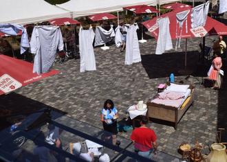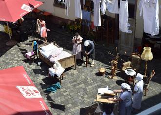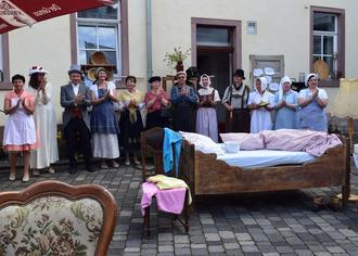 Zum Beispiel war der Bauer mit seiner Bäuerin unterwegs um Korn zu dreschen, Waschfrauen haben die Wäsche mit der Bürste am Waschbrett gewaschen, während sich der eine oder andere mit Schlafmütze und Wärmflasche in ein schönes altes Bett legte.