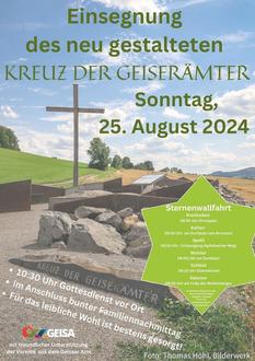 Geisa. Die Stadt Geisa sowie die Gemeinden Buttlar, Schleid und Gerstengrund laden am Sonntag, den 25. August 2024, zur feierlichen Einweihung des neu gestalteten „Kreuz der Geiserämter“ ein. Um 10.30 Uhr wird am Standort des Kreuzes unterhalb des Rockenstuhles bei Geismar zu einem feierlichen Festgottesdienst mit den beiden Domkapitularen Bruno Heller und Prof. Dr. Christoph Müller sowie Pastor Dr. Jürgen Kämpf eingeladen. Im Vorfeld haben die Pfarrgemeinden aus dem Geisaer Amt Sternenwallfahrten von den einzelnen Orten zum Kreuz hin organisiert. Treffpunkte für diese sind in Ketten 8.30 Uhr der Dorfplatz am Brunnen, Kranlucken 8.30 Uhr am Kirchplatz, Spahl 8.30 Uhr am Ortsausgang Apfelbacher Weg, Motzlar 9 Uhr am Dorfplatz, Schleid 9.15 Uhr an der Ulsterbrücke und in Geismar geht es um 9.30 Uhr am Fuße des Weiherberges los.