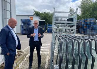 (v.l.n.r.) Thomas Kemmerich im Gespräch mit Geschäftsführer Andreas Kath von der Firma Fahrzeugbau GmbH Geisa
