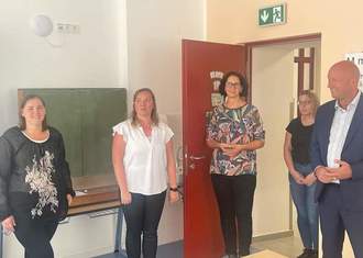 (v.l.n.r.) Franziska Göb (Elternbeiratsvorsitzende der GS Geisa), Susann Falkenhahn (Lehrerin GS Geisa), Anja Nimmich (stellv. Elternbeiratsvorsitzende GS Geisa), Maria Wehner (Hortkoordinatorin/Förderverein GS Geisa) und Thomas Kemmerich (FDP Landesvorsitzender)