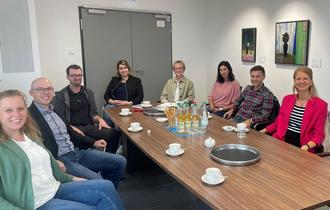 Geisa. Zu einem interkommunalen Austausch trafen sich Vertreter der Stadt Geisa und der Stadt Werra-Suhl-Tal in der ANNELIESE DESCHAUER G a l e r i e in Geisa. Bürgermeisterin Manuela Henkel (CDU) begrüßte ihren Amtskollegen Maik Klotzbach (SPD) sowie die Amtsleiter Kristina Schwan, Elisa Noll, Maxim Mähler und Matthias Wittich und freute sich über den Besuch. Die Delegation aus Werra-Suhl-Tal hatte sich zwei Tage im Schlosshotel der Point Alpha Akademie in Geisa zu einer Klausurtagung getroffen. Die Zeit nutzte man auch, um einen intensiven Austausch mit der Stadtverwaltung Geisa über Themen wie Digitalisierung der Verwaltung, den Glasfaserausbau oder kommunale Strukturen zu besprechen. Geisas Kämmerin Rita Oswald und ihre Kollegin Denise Kindschuh stellten dabei die praktische Umsetzung der E-Rechnung und die damit verbundenen Herausforderungen vor. Die E-Rechnung wurde vor zwei Jahren in der Stadtverwaltung Geisa im Rahmen eines Pilotprojektes eingeführt. Beim Gespräch stellte man auch recht schnell verschiedene Gemeinsamkeiten zwischen den beiden Kommunen fest. Das Geisaer Land lag genauso wie Werra-Suhl-Tal jahrzehntelang im Sperrgebiet der ehemaligen DDR, was beide Regionen prägte. „Es ist wichtig, dass wir uns in der kommunalen Familie immer wieder austauschen, um neue Anregungen zu bekommen, um die Zusammenarbeit zu intensivieren und vor allem um auch immer wieder den Blick über den Tellerrand hinaus zu bekommen“, waren sich die Bürgermeister Maik Klotzbach und Manuela Henkel im Anschluss an das Gespräch einig.