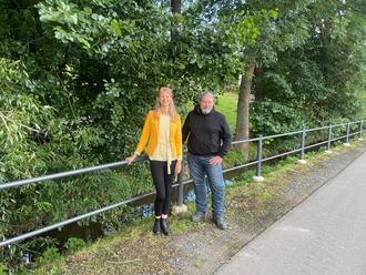 (v.l.n.r.) Ortsteilbürgermeister Marcus Kircher und Bürgermeisterin Manuela Henkel am neuen Geländer am "Bremenbach" in Bremen
