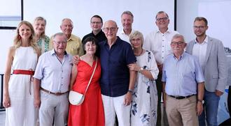Der geehrte Berthold Dücker und seine Frau Melitta (vorne, 3. & 2. v.r.) umrahmt von (hintere Reihe von rechts): Benedikt Stock (Point Alpha Stiftung), Martin Hank, Raymond Walk (Vorsitzender Förderverein und Moderator), Stefan Sachs, Dr. Hans-Peter Häfner und Margarete Ziegler-Raschdorf. Vordere Reihe von links: Manuela Henkel, Frank-Michael Pietsch und Gattin sowie Berthold Jost (Förderverein)