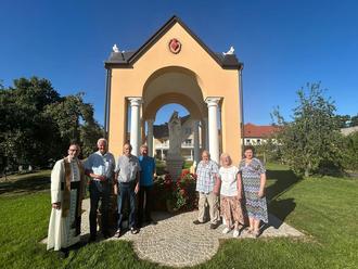 "Errichtet zu Ehren der Himmelskönigin und ihres göttlichen Sohnes von den Eheleuten Karl Schwert und Leopoldine, geb. Mihm aus Haselstein" so kann man auf dem Sockel der im neuen Glanz erstrahlenden Muttergottes lesen. Über Jahrzehnte wurde die Figur von Rosa Schwert und ihrem Mann Josef, einem Nachkommen der Erbauer, gepflegt. „Zu DDR-Zeiten hatten wir kaum Möglichkeiten, sie zu schützen. Wenn sie grün wurde, haben wir sie sauber gemacht – mehr konnten wir nicht tun“, berichtete Rosa Schwert. Seitdem hegte sie immer wieder den Wunsch die Figur zu überdachen, um sie vor der Witterung zu schützen. Aber wie das Ganze aussehen sollte, dazu konnte sie sich lange nicht entscheiden. Eines Tages plante sie mit ihrer Tochter Christin ihre andere Tochter Anja im Kloster zu besuchen. Damit sie einen gemeinsamen Termin fanden, legte Christin ihr einen Kalender hin. "Es war Januar", erinnert sich Rosa Schwert noch ganz genau. "Ich schlug allerdings spontan die Juliseite des Kalenders auf und da wusste ich, wie die Überdachung für unsere Muttergottes aussehen sollte." Ein Bild der Kapelle von Fátima im Kalender war es, welches sie inspirierte. "Christin, genau das habe ich gesucht!", rief sie voller Begeisterung. Das war vor etwa zehn Jahren. Die Frage kam auf, wer könnte solch eine Kapelle bauen. Rosa Schwert wandte sich an verschiedene Architekten, kam dort aber nicht weiter. "Also fing ich an zu beten", berichtete sie. „Gott hilft immer weiter!“ Als sie eines Tages an einem Freitagabend im Frühjahr 2016 in Gedanken in der Kranluckener Kirche versunken war und Gott wieder um Unterstützung bat, stand diese promt nach dem Gottesdienst auf dem Kirchplatz. Es war Gerhard Leister, Maurer und Unternehmer aus Bermbach, den Rosa Schwert spontan mit den Worten ansprach: „Dich hat der liebe Gott geschickt!". Sie holte rasch den Kalender mit dem Bild der Fátima-Kapelle aus ihrem Auto, das sie seit Monaten mit sich trug und erklärte ihm ihr Vorhaben. "Mein erster Gedanke war nur, wie soll das denn funktionieren", berichtete Gerhard Leister bei der Einweihung auf dem Unterrothof. Solch ein Vorhaben hatte er doch noch nie umgesetzt. Er nahm das Bild aus dem Kalender und machte sich Gedanken darüber, wie man so etwas bewerkstelligen konnte. Im Oktober desselben Jahres wurde dann mit dem Bau der Kapelle begonnen. Die Firma Egbert Kiesler aus Motzlar führte die Bagger- und Erdarbeiten aus. Gerhard Leister betonierte im Anschluss die Fundamente und die Betonsohle und startete umgehend mit den Maurerarbeiten. Die Eckpfeiler, Rundbögen und die vier Giebelseiten wurden aus Ziegelsteinmauerwerk hergestellt. Die Decke besteht aus einem Kreuzgewölbe. "Die Herstellung der Schalung war eine echte Herausforderung", berichtete Gerhard Leister. Besonders auffallend sind die vier Tauben auf dem Dach der Kapelle, die sich auch in Fátima wiederfinden. Sie blicken in die vier Himmelsrichtungen und stehen sinnbildlich für den Frieden sowie für den Heiligen Geist und die weltweite Botschaft der Erscheinungen in dem bekannten Wahlfahrtsort. Im Herbst 2017 konnte Gerhard Leister die restlichen Rohbauarbeiten beenden. Das Dach und die Kupferabdeckung wurden angebracht und anschließen die Putz- und Malerarbeiten ausgeführt. Im Winter 2022/2023 begann sein Bruder Clemens Leister die Figur der Muttergottes umfangreich in vielen Stunden zu restaurieren. Dabei bekam sie auch einen farblichen Anstrich. Im Frühjahr 2023 fand die Statue dann ihren Platz in der neuen Kapelle. Im Anschluss wurde noch die Außenanlage erneuert. "Dieser besondere Ort hier ist ein Ort des Gebetes, der Hoffnung und der Stille“, betonte Pastor Dr. Jürgen Kämpf in seiner Ansprache während der Einweihung. Die Marienerscheinungen in Fátima fanden 1917 während des 1. Weltkrieges statt. "Auch heute leben wir wieder in unsicheren Zeiten“, so Pastor Kämpf. „Maria von Fátima lehrt: kein Friede ohne Umkehr, kein Friede ohne Gott." Frieden werde nicht nur verhandelt, er muss vor allen Dingen erbeten werden, ist sich der Priester sicher. Im Anschluss wurde zum gemeinsamen Austausch und Essen eingeladen. „Mit der Einweihung der Kapelle ist für mich mit Gottes Hilfe ein Herzenswunsch in Erfüllung gegangen“, sagte Rosa Schwert voller Rührung und Dankbarkeit.
