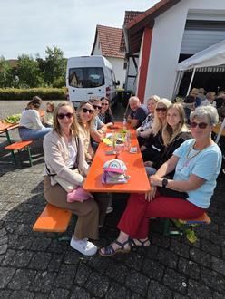 Nach dem Gottesdienst ging es gesellig weiter: Auf dem Dorfplatz lud ein exklusiver Weinabend mit regionalen Spezialitäten zum Verweilen ein. Der neu gegründete Verein "Dorfgemeinschaft Wiesenfeld" versorgte die Gäste mit ofenfrischer Pizza, knusprigem Flammkuchen und kleinen Snacks. Familien und Freunde nutzten den Abend, um in vertrauter Atmosphäre gemeinsam zu feiern.