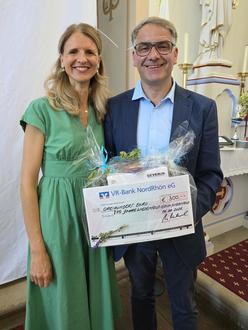 Bürgermeisterin der Stadt Geisa, Manuela Henkel, übergibt Spendenscheck an Ortsteilbürgermeister Michael Kehl