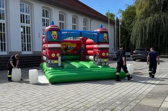 Die Feuerwehr lockte mit einer Hüpfburg ...